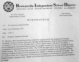 Under the pretext that an urgency existed because the insurance ran out on January 31, CFO Lucio on January 22, wrote Montoya and said that “after considering the time constraints to go out for new proposals for property insurance, trying to schedule committee meetings and the expiration of the property insurance policy…it is my fiduciary duty to protect the district assets to the bet of my ability. I would respectfully recommend that we renew the property insurance through the Texas Cooperative Purchasing Network (TCPN, or Texas Buy Board).”